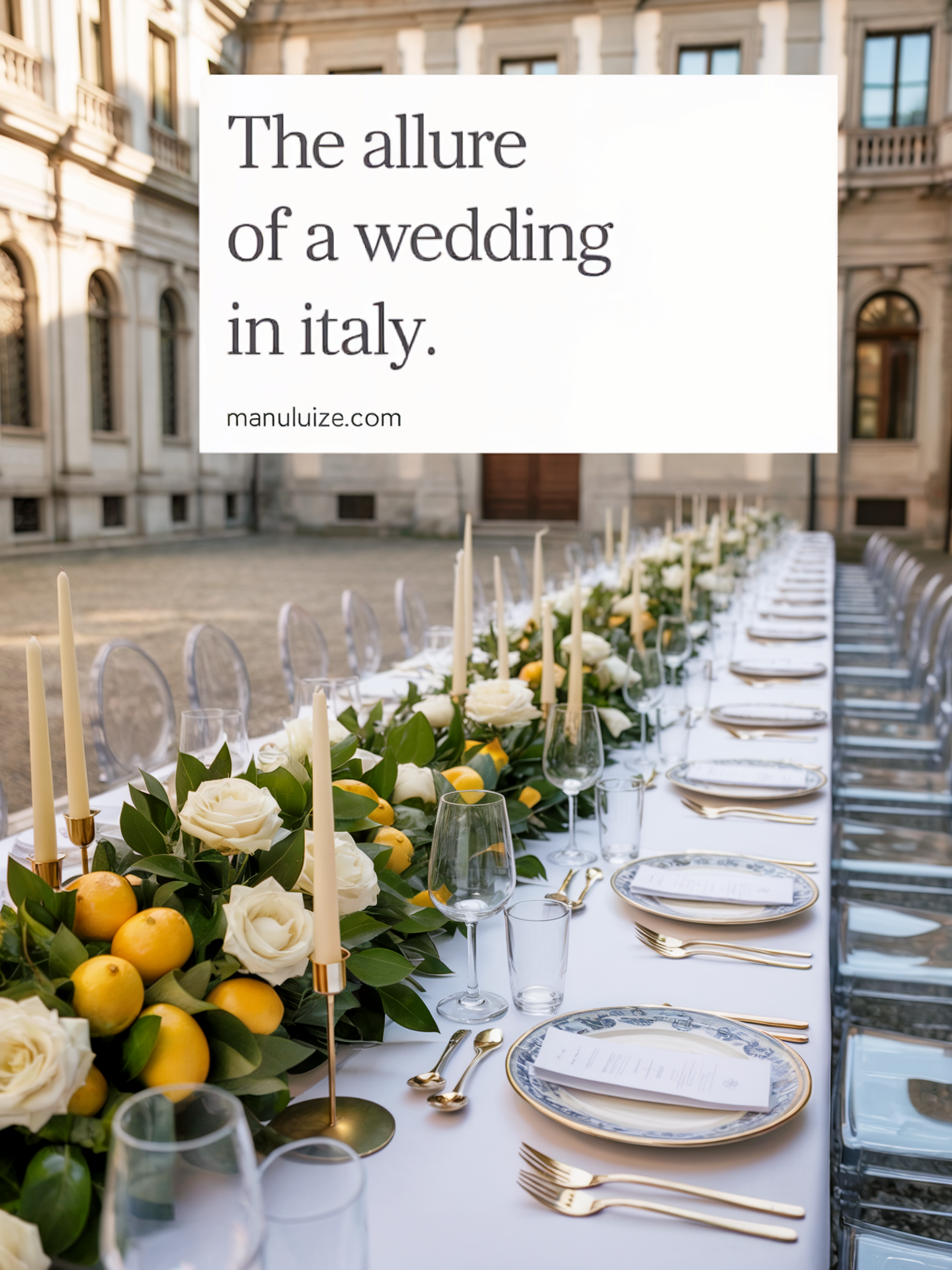 Italian weddings are famous for their style, but the most memorable celebrations are those that feel personal. Perhaps you include handwritten notes for each guest or a ceremony under the same olive tree you visited together years before. The beauty of a wedding in Italy lies in blending old-world charm with your modern love story. Minimalist florals paired with antique tableware, or a string quartet playing your favorite song as you walk down the aisle, create harmony between tradition and personality.